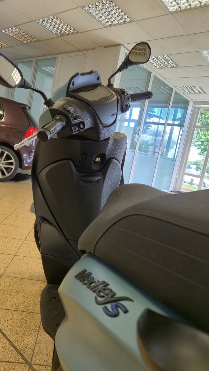 ABS Katalysator Elektrostarter Fahrzeugbeschreibung Die Piaggio Medley S 125 überzeugt mit sportlichem Design, moderner Technik und hohem Alltagskomfort. Der spritzige und sparsame 125-ccm-Motor macht sie ideal für Stadtverkehr und Pendelstrecken. Mit zwei-Kanal-ABS und Traktionskontrolle (ASR) bietet sie ein hohes Maß an Sicherheit, während der sportliche S-Look, die LED-Beleuchtung und die hochwertige Verarbeitung für einen dynamischen Auftritt sorgen. Großer Stauraum und eine komfortable Sitzposition runden das Gesamtpaket ab. Ideal für A1- oder B196-Führerschein - elegant, zuverlässig und alltagstauglich. Die Medley S 125 kommt mit 2 jähriger Herstellergarantie und ist sofort verfügbar. Anschreiben, Termin vereinbaren und losfahren!